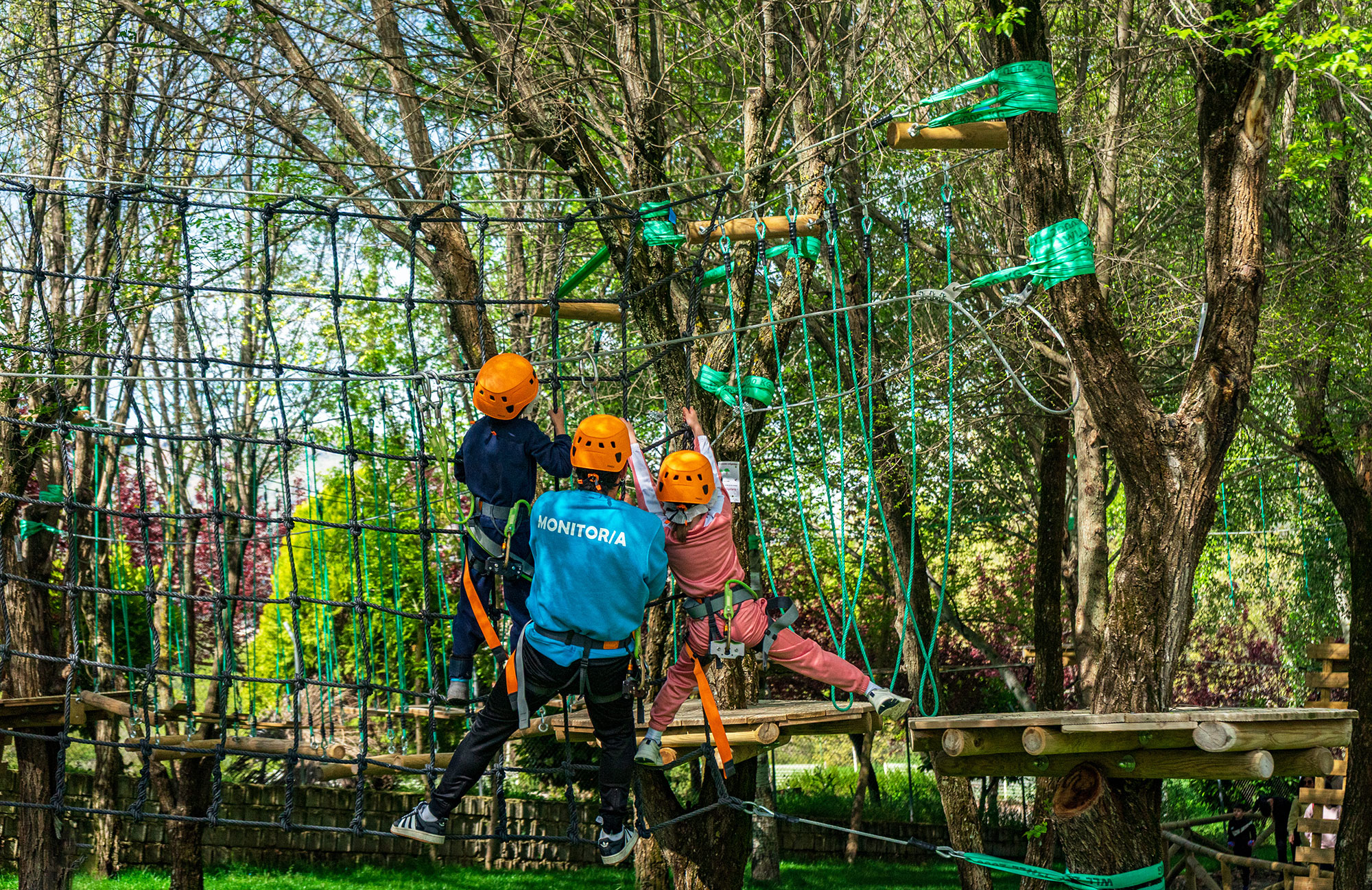 Para quienes buscan un extra de emoción, el parque multiaventura entre árboles ofrece puentes, retos de altura y dos tirolinas que te harán volar. También puedes probar el tiro con arco, compartir juegos en equipo o sumarte a las propuestas de nuestros monitores, siempre dispuestos a crear momentos llenos de energía, con un sinfín de actividades para que los niños interactúen con la naturaleza.