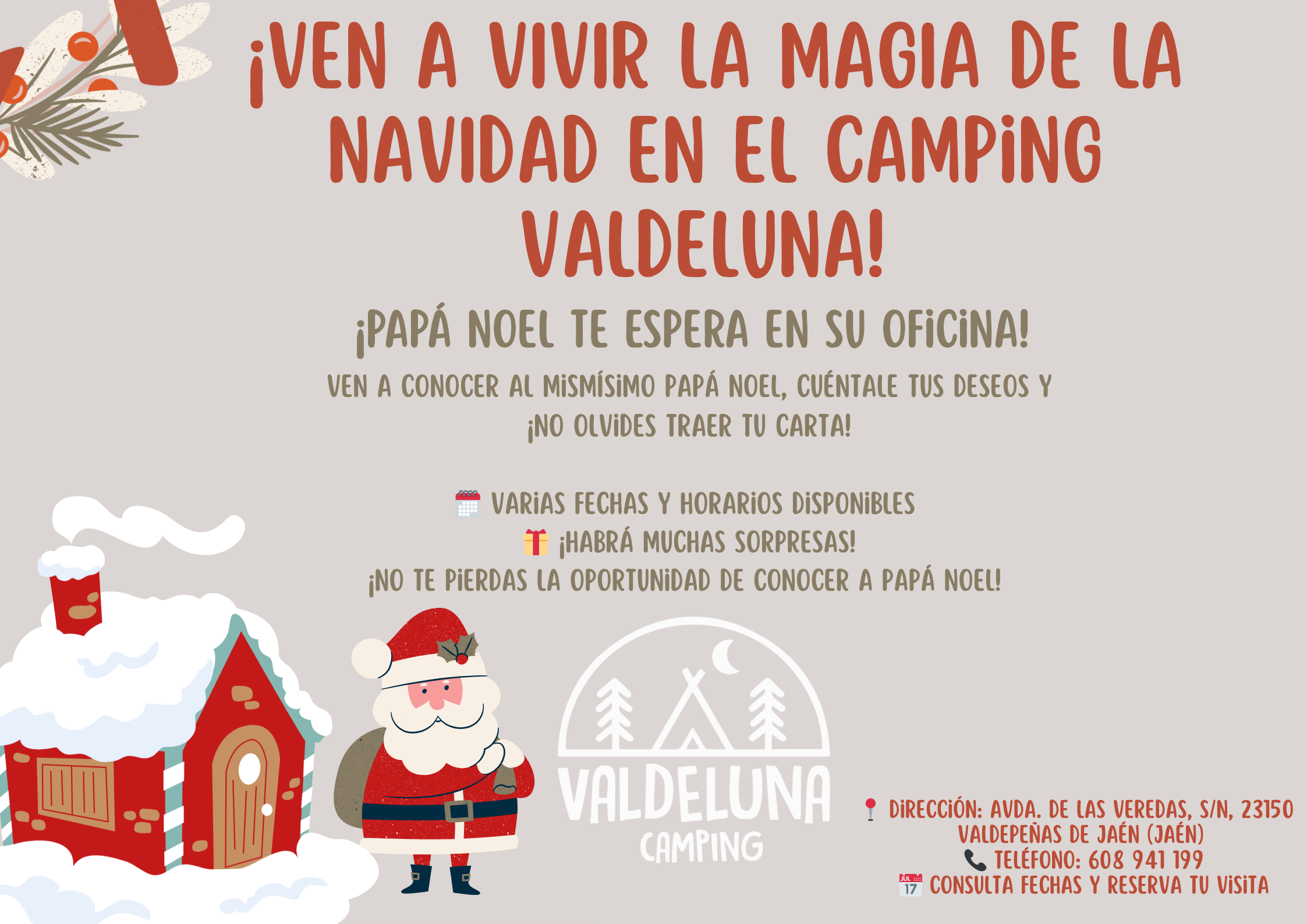 Visita el pueblo de Papa Noel en Camping Valdeluna. Para más información pincha sobre la imagen o contacte al 608 94 11 99